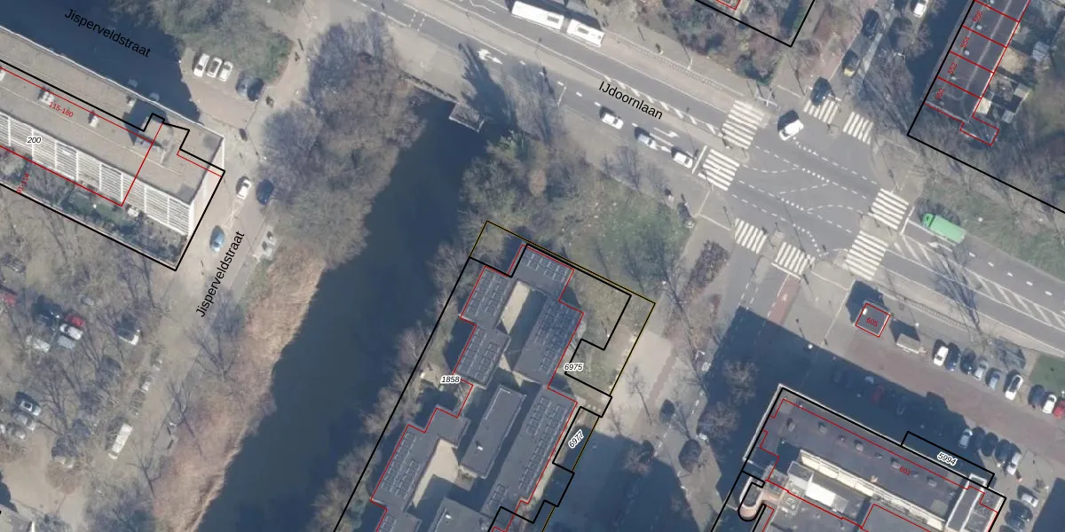 Het adres is gelegen op perceel 1858 in de sectie AL en de kadastrale gemeente Amsterdam. De kadastrale aanduiding is aldus ASD31-AL-1858. De oppervlakte van het perceel is 2365 m². Dat is groter dan gemiddeld in Amsterdam, waar de gemiddelde perceeloppervlakte op 1159,38 m² ligt. De grootste perceeloppervlakte in de kadastrale gemeente is 35,6 ha. De kleinste oppervlakte bedraagt 0 m². Er zijn 27 adressen aanwezig op het perceel. De huidige grenzen van het perceel zijn digitaal in de Basisregistratie Kadaster (BRK) geregistreerd op 24-05-2022.