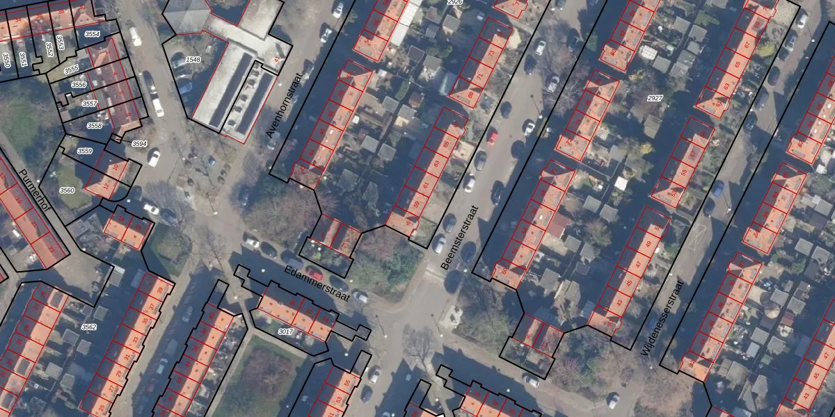 Het perceel waarop Beemsterstraat 59 staat heeft een oppervlakte van 4192 m². Dit is een zeer groot perceel. De perceeloppervlakte wordt geregistreerd door het Kadaster. Gedetailleerde informatie over de maten van dit perceel kunt u vinden in het rapport Kadastrale kaart met maatvoering van Beemsterstraat 59.