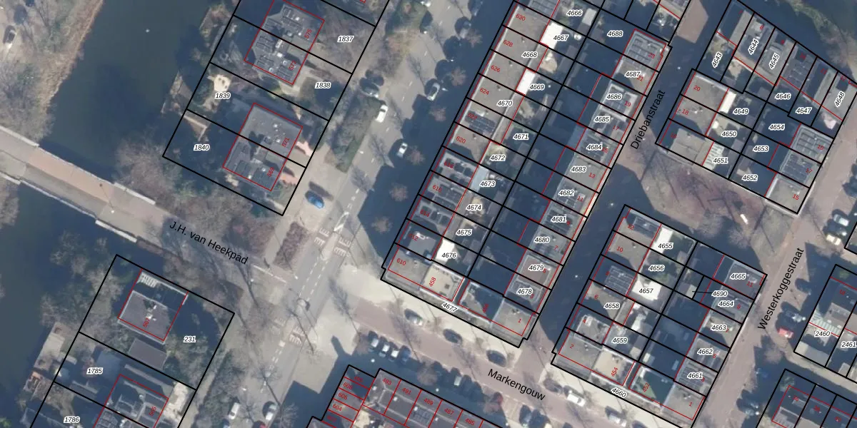 Gebruik de zoekbalk of klik op een perceel voor informatie over de adressen binnen dit perceel.