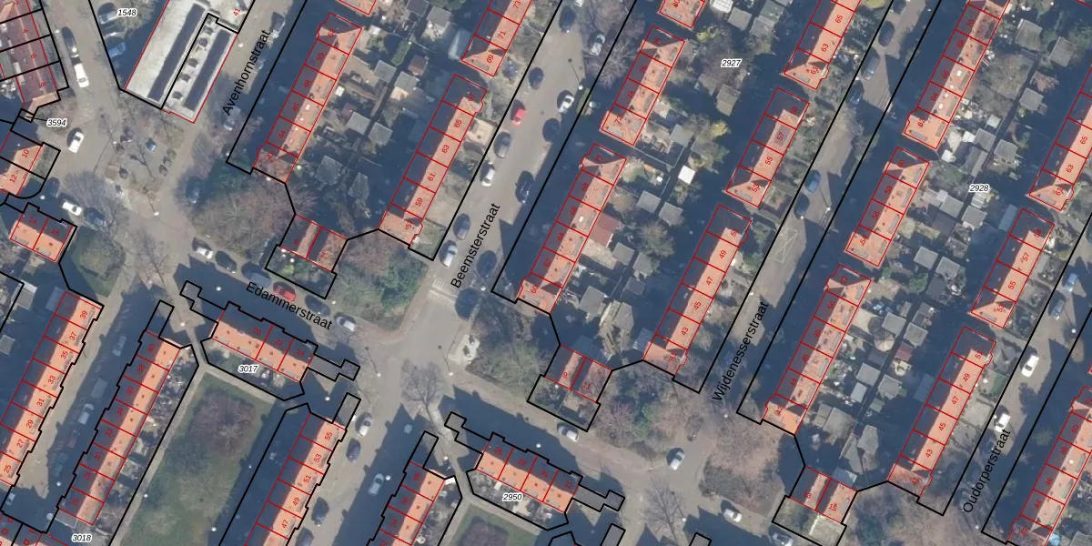 Het perceel waarop Beemsterstraat 62 staat heeft een oppervlakte van 4191 m². Dit is een zeer groot perceel. De perceeloppervlakte wordt geregistreerd door het Kadaster. Gedetailleerde informatie over de maten van dit perceel kunt u vinden in het rapport Kadastrale kaart met maatvoering van Beemsterstraat 62.