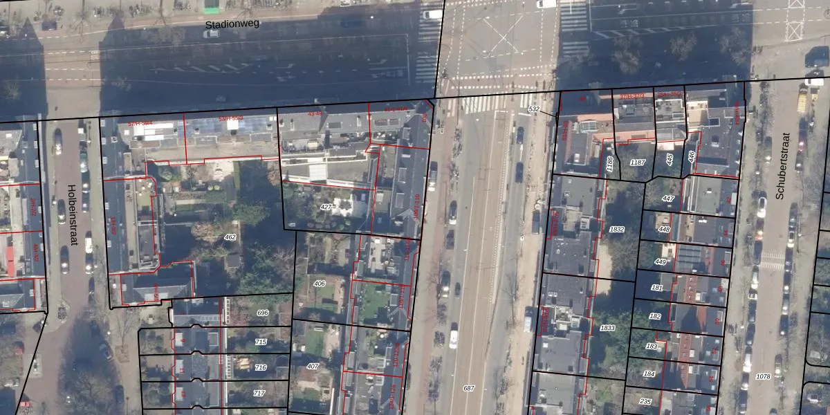 Het perceel waarop het adres ligt is ASD23-AB-427. De afkorting 'ASD23' staat voor kadastrale gemeente Amsterdam. Het perceel is 1118 m² groot. Dat is kleiner dan de gemiddelde perceeloppervlakte in Amsterdam, dat op 1139,27 m² ligt. De grootste perceeloppervlakte in de kadastrale gemeente is 28,7 ha. De kleinste oppervlakte bedraagt 0 m². Op het perceel liggen in totaal 19 adressen. De huidige grenzen van het perceel zijn digitaal in de Basisregistratie Kadaster (BRK) geregistreerd op 26-10-2006.