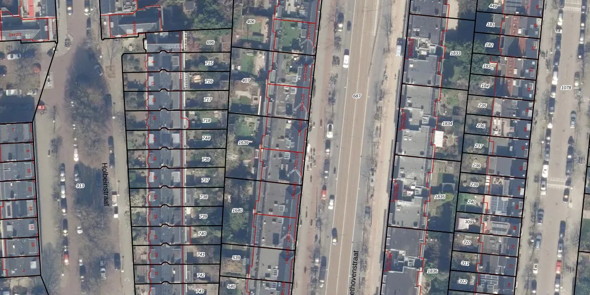 Het perceel waarop Beethovenstraat 130-1 staat heeft een oppervlakte van 600 m². Dit is een groot perceel. De perceeloppervlakte wordt geregistreerd door het Kadaster. Gedetailleerde informatie over de maten van dit perceel kunt u vinden in het rapport Kadastrale kaart met maatvoering van Beethovenstraat 130-1.