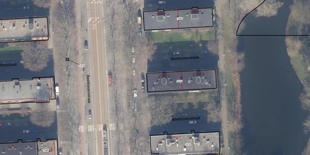 Het perceel waarop Beethovenstraat 137-1 staat heeft een oppervlakte van 535 m². Dit is een groot perceel. De perceeloppervlakte wordt geregistreerd door het Kadaster. Gedetailleerde informatie over de maten van dit perceel kunt u vinden in het rapport Kadastrale kaart met maatvoering van Beethovenstraat 137-1.