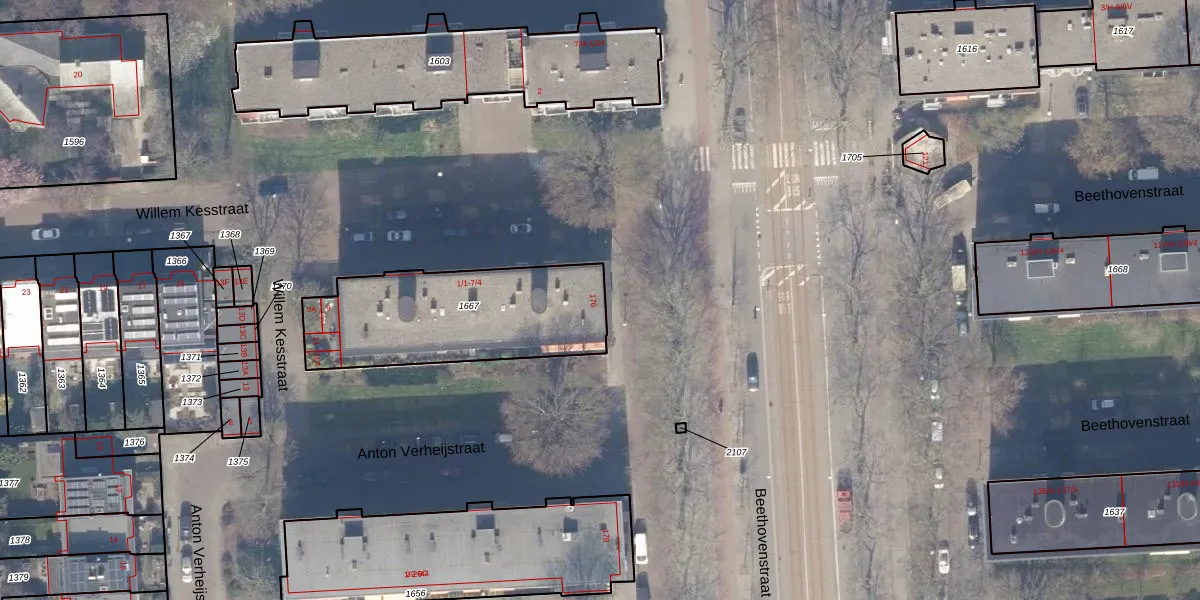 Het perceel waarop Beethovenstraat 176 staat heeft een oppervlakte van 742 m². Dit is een groot perceel. De perceeloppervlakte wordt geregistreerd door het Kadaster. Gedetailleerde informatie over de maten van dit perceel kunt u vinden in het rapport Kadastrale kaart met maatvoering van Beethovenstraat 176.