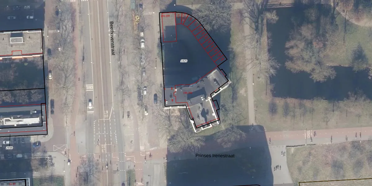 Het perceel waarop Beethovenstraat 215 staat heeft een oppervlakte van 1565 m². Dit is een zeer groot perceel. De perceeloppervlakte wordt geregistreerd door het Kadaster. Gedetailleerde informatie over de maten van dit perceel kunt u vinden in het rapport Kadastrale kaart met maatvoering van Beethovenstraat 215.