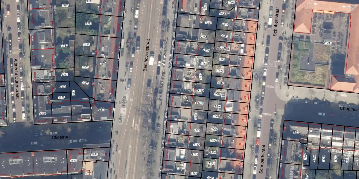 Het perceel waarop Beethovenstraat 59-H staat heeft een oppervlakte van 169 m². Dit is een middelgroot perceel. De perceeloppervlakte wordt geregistreerd door het Kadaster. Gedetailleerde informatie over de maten van dit perceel kunt u vinden in het rapport Kadastrale kaart met maatvoering van Beethovenstraat 59-H.