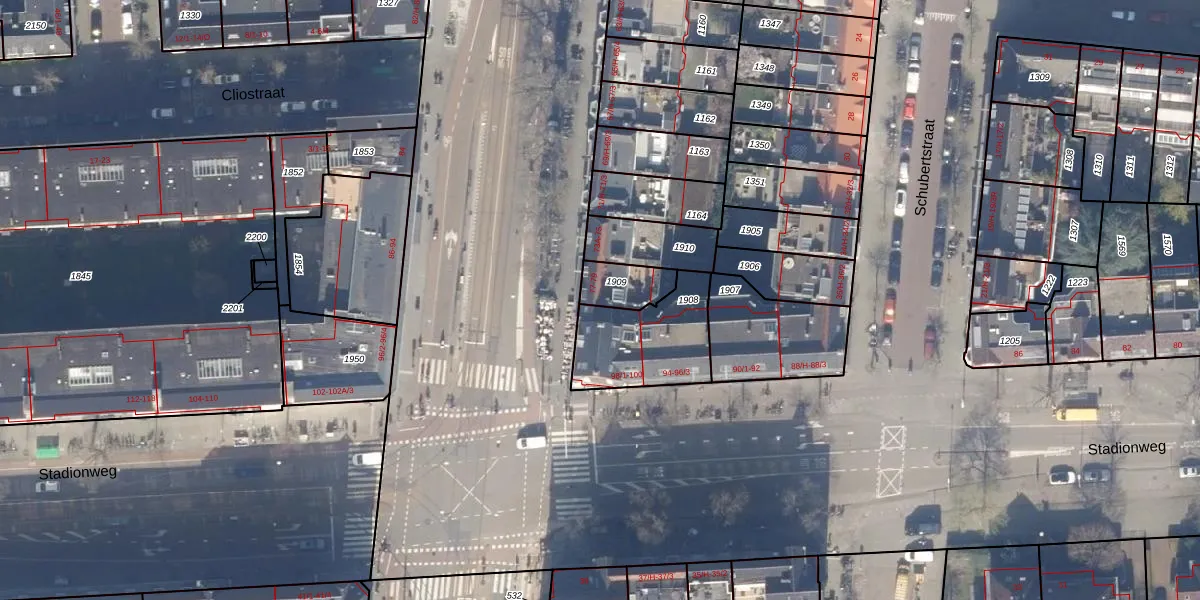 Het perceel waarop Beethovenstraat 79 staat heeft een oppervlakte van 107 m². Dit is een middelgroot perceel. De perceeloppervlakte wordt geregistreerd door het Kadaster. Gedetailleerde informatie over de maten van dit perceel kunt u vinden in het rapport Kadastrale kaart met maatvoering van Beethovenstraat 79.