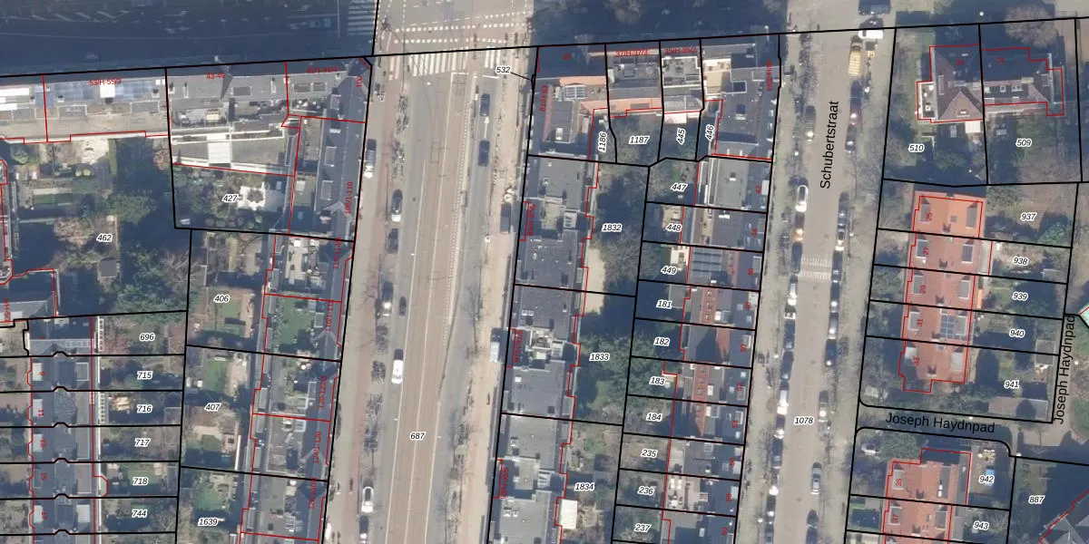 Het perceel waarop Beethovenstraat 87-4 staat heeft een oppervlakte van 541 m². Dit is een groot perceel. De perceeloppervlakte wordt geregistreerd door het Kadaster. Gedetailleerde informatie over de maten van dit perceel kunt u vinden in het rapport Kadastrale kaart met maatvoering van Beethovenstraat 87-4.