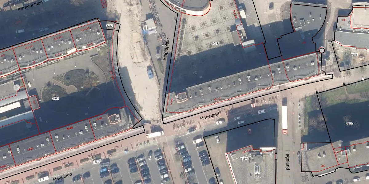 Het perceel waarop Belgiëplein 2 staat heeft een oppervlakte van 4535 m². Dit is een zeer groot perceel. De perceeloppervlakte wordt geregistreerd door het Kadaster. Gedetailleerde informatie over de maten van dit perceel kunt u vinden in het rapport Kadastrale kaart met maatvoering van Belgiëplein 2.
