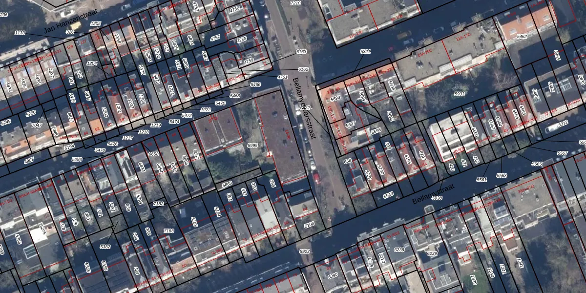 Het perceel waarop Bellamydwarsstraat 30 staat heeft een oppervlakte van 862 m². Dit is een groot perceel. De perceeloppervlakte wordt geregistreerd door het Kadaster. Gedetailleerde informatie over de maten van dit perceel kunt u vinden in het rapport Kadastrale kaart met maatvoering van Bellamydwarsstraat 30.