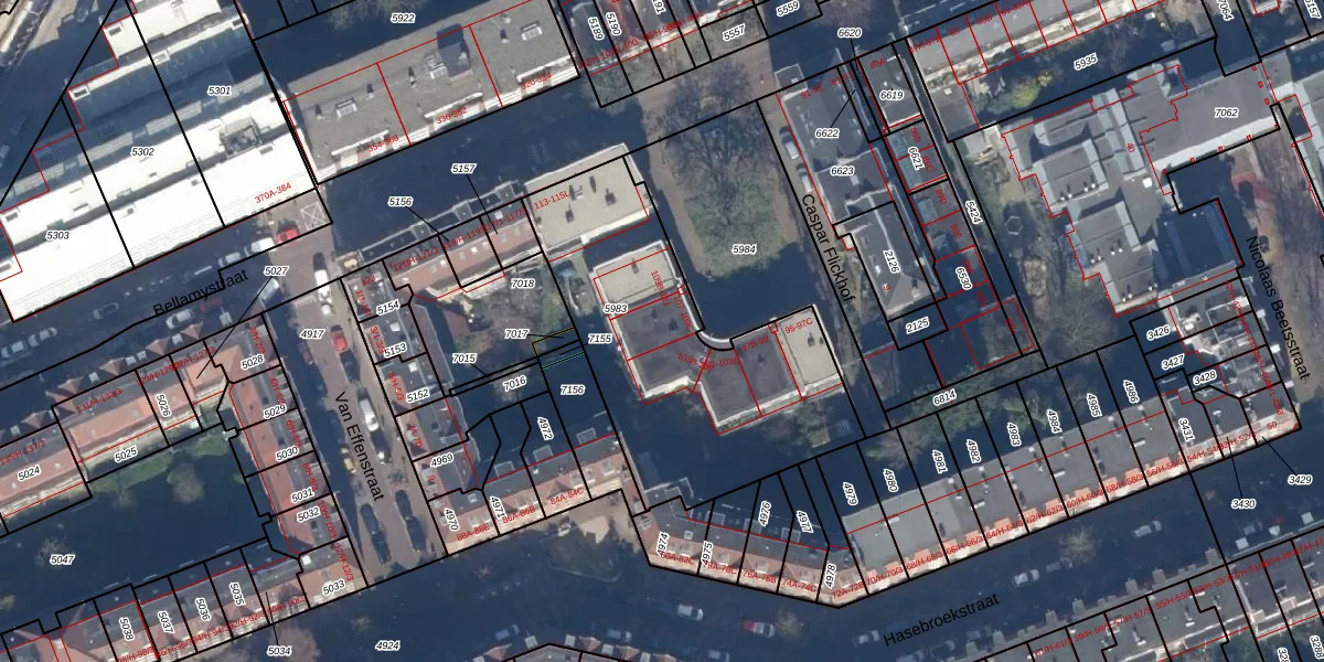 Het perceel waarop het adres ligt is ASD16-T-5983. De afkorting 'ASD16' staat voor kadastrale gemeente Amsterdam. De oppervlakte van het perceel is 1295 m². Dat is groter dan gemiddeld in Amsterdam, waar de gemiddelde perceeloppervlakte op 245,33 m² ligt. Het kleinste perceel in de kadastrale gemeente is 0 m² groot. De grootste perceeloppervlakte is 3,3 ha. Op het perceel zijn 29 adressen aanwezig. In de Basisregistratie Kadaster (BRK) werden de grenzen van het perceel geregistreerd op 07-05-2018.