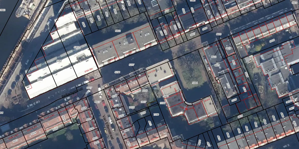 Het perceel waarop het adres ligt is ASD16-T-5983. De afkorting 'ASD16' staat voor kadastrale gemeente Amsterdam. De oppervlakte van het perceel is 1295 m². Dat is groter dan gemiddeld in Amsterdam, waar de gemiddelde perceeloppervlakte op 245,33 m² ligt. Het kleinste perceel in de kadastrale gemeente is 0 m² groot. De grootste perceeloppervlakte is 3,3 ha. Er zijn 29 adressen aanwezig op het perceel. In de Basisregistratie Kadaster (BRK) werden de grenzen van het perceel geregistreerd op 07-05-2018.