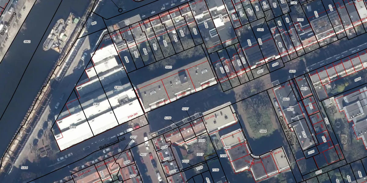 Het perceel waarop het adres ligt is ASD16-T-5922. De afkorting 'ASD16' staat voor kadastrale gemeente Amsterdam. De oppervlakte van het perceel is 1014 m². Dat is groter dan gemiddeld in Amsterdam, waar de gemiddelde perceeloppervlakte op 245,33 m² ligt. Het kleinste perceel in de kadastrale gemeente is 0 m² groot. De grootste perceeloppervlakte is 3,3 ha. Op het perceel liggen in totaal 25 adressen. In de Basisregistratie Kadaster (BRK) werden de grenzen van het perceel geregistreerd op 12-01-2007.