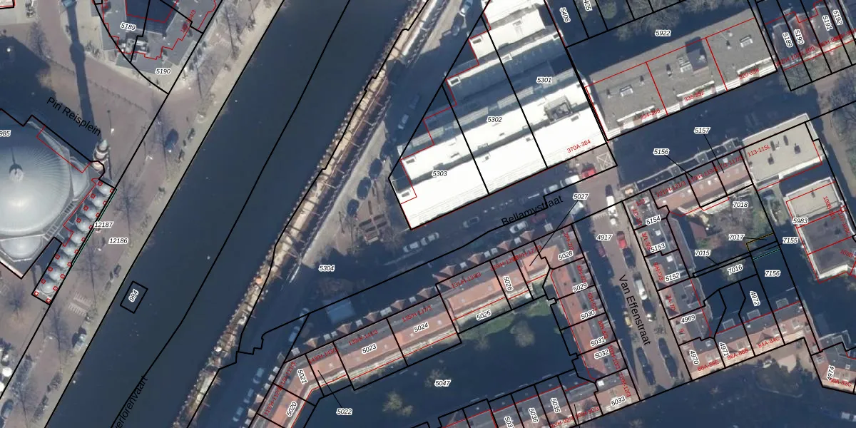 Het adres is gelegen op perceel 5303 in de sectie T en de kadastrale gemeente Amsterdam. De kadastrale aanduiding is aldus ASD16-T-5303. De oppervlakte van het perceel is 413 m². Dat is groter dan gemiddeld in Amsterdam, waar de gemiddelde perceeloppervlakte op 245,33 m² ligt. Het kleinste perceel in de kadastrale gemeente is 0 m² groot. De grootste perceeloppervlakte is 3,3 ha. Op het perceel liggen in totaal 15 adressen. In de Basisregistratie Kadaster (BRK) werden de grenzen van het perceel geregistreerd op 12-01-2007.