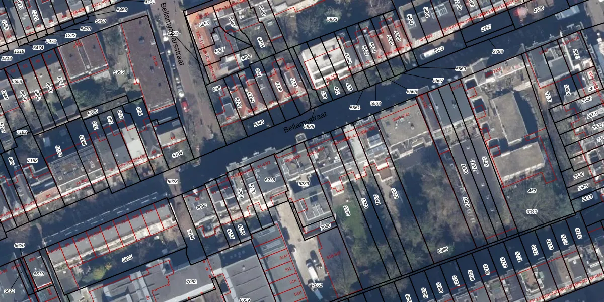 Het perceel waarop Bellamystraat 49-F staat heeft een oppervlakte van 295 m². Dit is een middelgroot perceel. De perceeloppervlakte wordt geregistreerd door het Kadaster. Gedetailleerde informatie over de maten van dit perceel kunt u vinden in het rapport Kadastrale kaart met maatvoering van Bellamystraat 49-F.