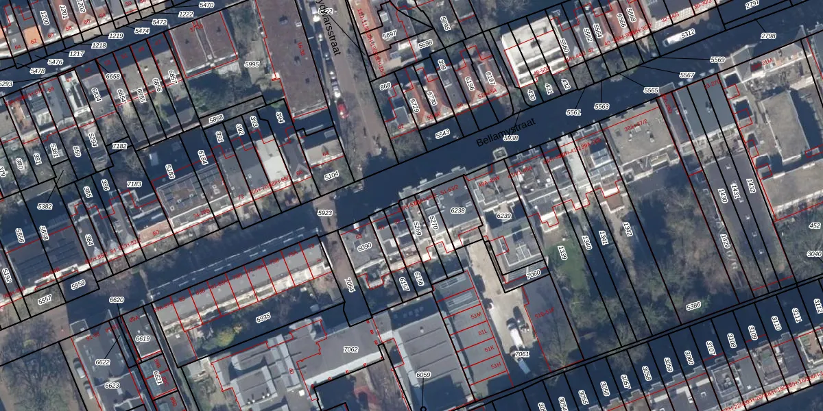 Het perceel waarop Bellamystraat 57-1 staat heeft een oppervlakte van 91 m². Dit is een klein perceel. De perceeloppervlakte wordt geregistreerd door het Kadaster. Gedetailleerde informatie over de maten van dit perceel kunt u vinden in het rapport Kadastrale kaart met maatvoering van Bellamystraat 57-1.