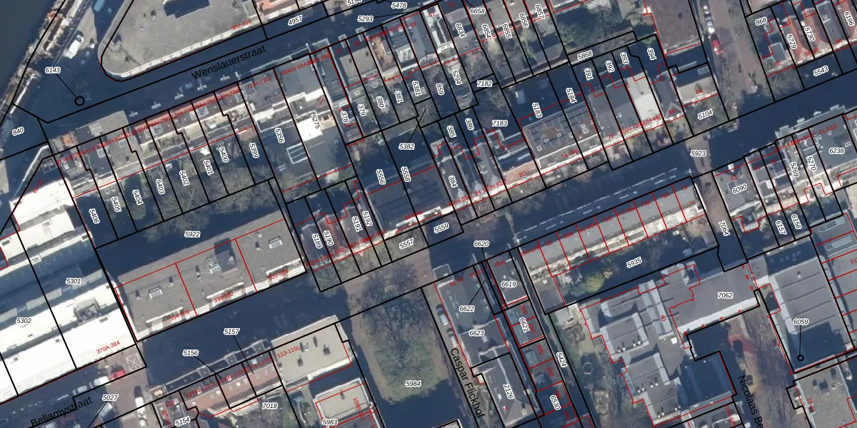 Het perceel waarop het adres ligt is ASD16-T-5558. De afkorting 'ASD16' staat voor kadastrale gemeente Amsterdam. Het perceel is 215 m² groot. Dat is kleiner dan de gemiddelde perceeloppervlakte in Amsterdam, dat op 245,33 m² ligt. Het kleinste perceel in de kadastrale gemeente is 0 m² groot. De grootste perceeloppervlakte is 3,3 ha. Op het perceel liggen in totaal 2 adressen. De huidige grenzen van het perceel zijn digitaal in de Basisregistratie Kadaster (BRK) geregistreerd op 12-01-2007.