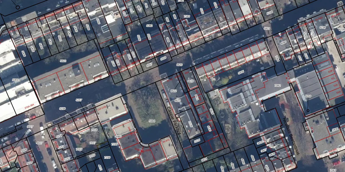 Het adres ligt op het perceel ASD16-T-6623, dat zich in de kadastrale gemeente Amsterdam bevindt. De gemiddelde perceeloppervlakte in de kadastrale gemeente Amsterdam is 245,33 m². Dit perceel is met zijn 546 m² dus groter dan gemiddeld. Het grootste perceel in de kadastrale gemeente is 3,3 ha. Het kleinste perceel heeft een oppervlakte van 0 m². Op het perceel zijn 5 adressen aanwezig. De huidige grenzen van het perceel zijn digitaal in de Basisregistratie Kadaster (BRK) geregistreerd op 04-06-2009.