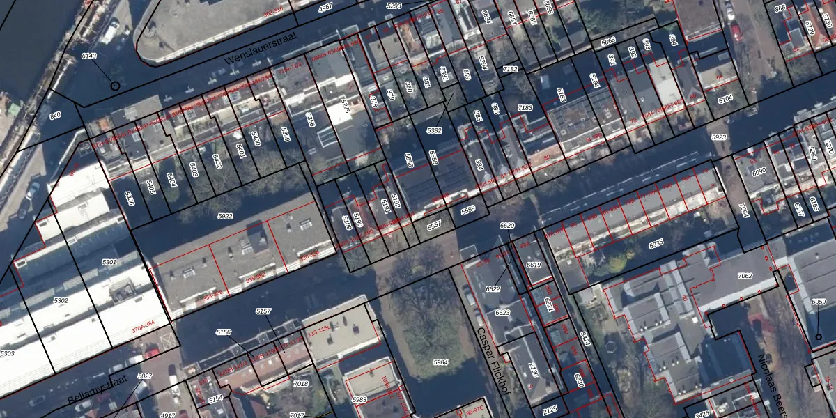 Het perceel waarop het adres ligt is ASD16-T-5556. De afkorting 'ASD16' staat voor kadastrale gemeente Amsterdam. Het perceel is 217 m² groot. Dat is kleiner dan de gemiddelde perceeloppervlakte in Amsterdam, dat op 245,33 m² ligt. Het kleinste perceel in de kadastrale gemeente is 0 m² groot. De grootste perceeloppervlakte is 3,3 ha. Er zijn 4 adressen aanwezig op het perceel. De huidige grenzen van het perceel zijn digitaal in de Basisregistratie Kadaster (BRK) geregistreerd op 12-01-2007.