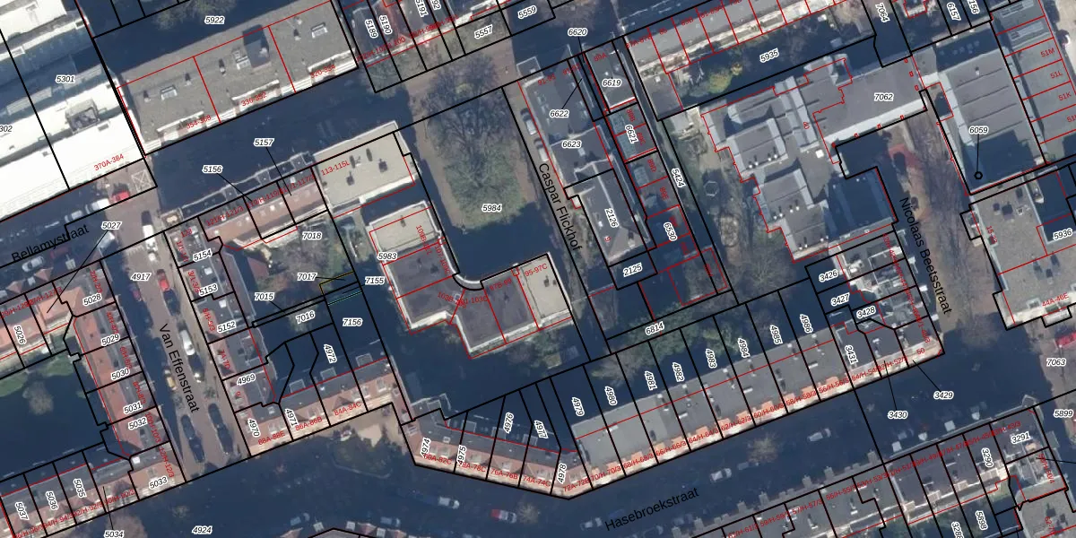 Het perceel waarop het adres ligt is ASD16-T-5983. De afkorting 'ASD16' staat voor kadastrale gemeente Amsterdam. De oppervlakte van het perceel is 1295 m². Dat is groter dan gemiddeld in Amsterdam, waar de gemiddelde perceeloppervlakte op 245,33 m² ligt. Het kleinste perceel in de kadastrale gemeente is 0 m² groot. De grootste perceeloppervlakte is 3,3 ha. Er zijn 29 adressen aanwezig op het perceel. In de Basisregistratie Kadaster (BRK) werden de grenzen van het perceel geregistreerd op 07-05-2018.