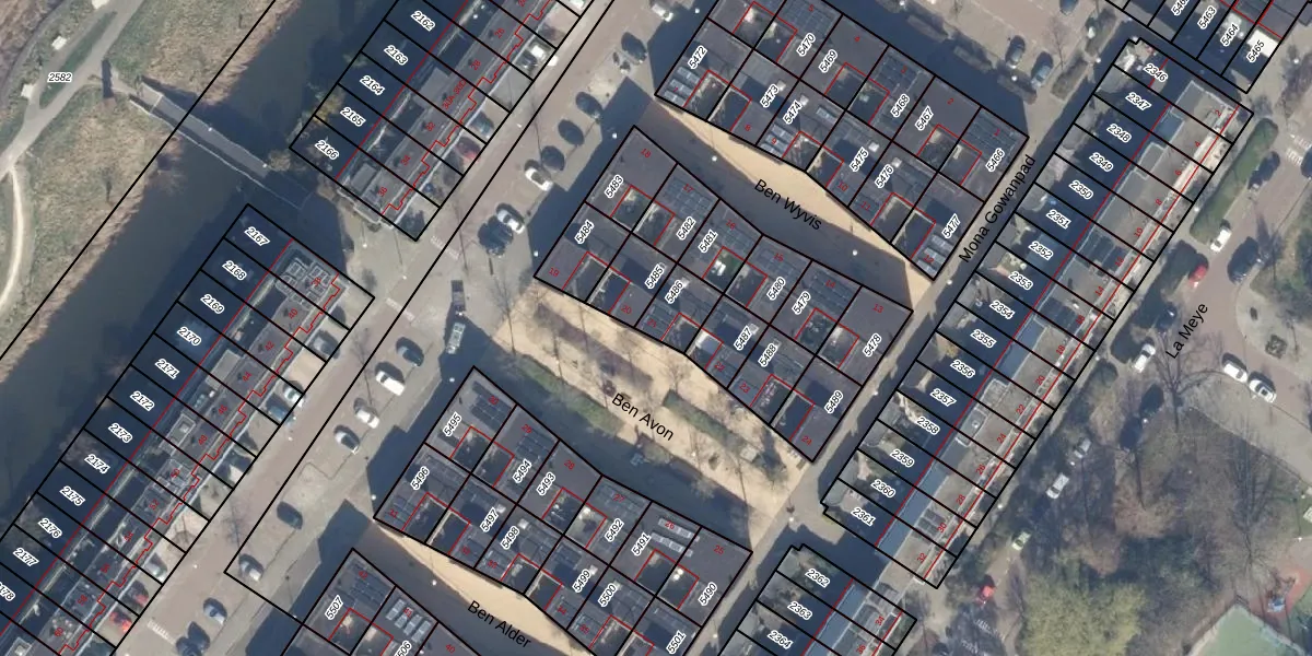 Gebruik de zoekbalk of klik op een perceel voor informatie over de adressen binnen dit perceel.