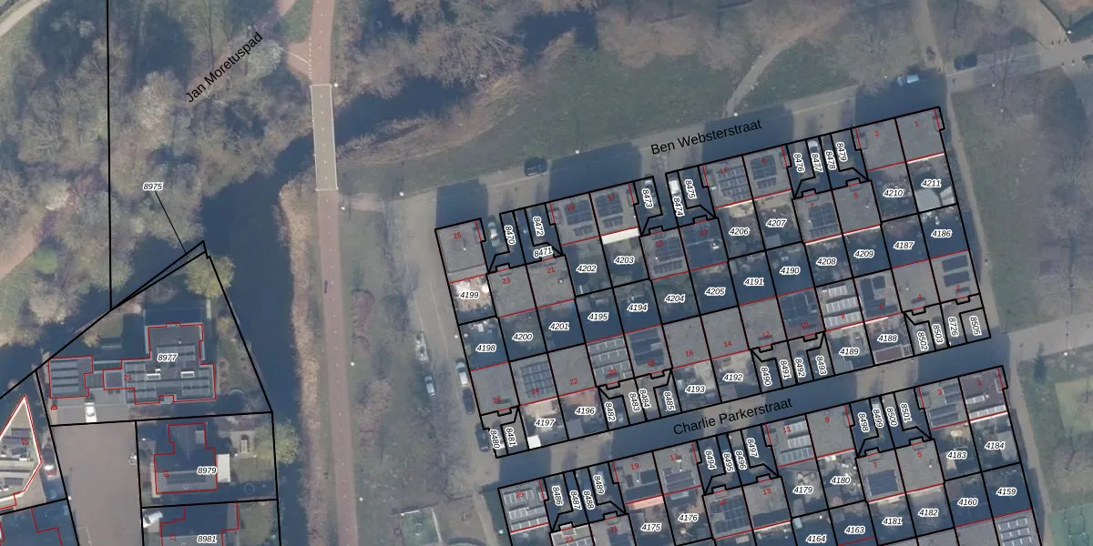 Gebruik de zoekbalk of klik op een perceel voor informatie over de adressen binnen dit perceel.