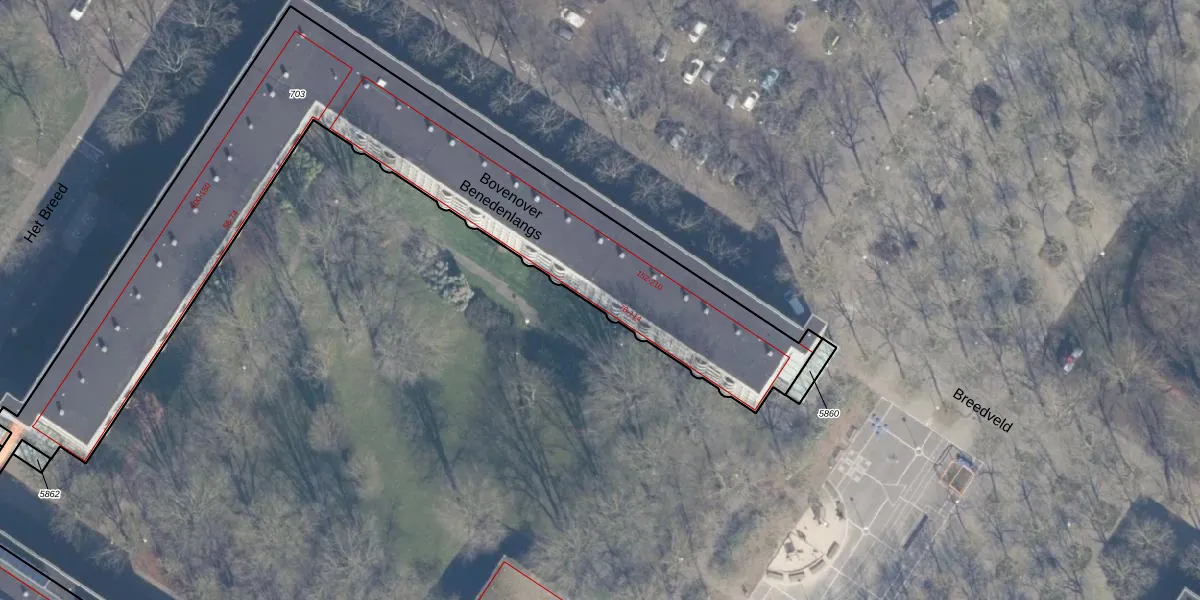 Het perceel waarop Benedenlangs 100 staat heeft een oppervlakte van 2428 m². Dit is een zeer groot perceel. De perceeloppervlakte wordt geregistreerd door het Kadaster. Gedetailleerde informatie over de maten van dit perceel kunt u vinden in het rapport Kadastrale kaart met maatvoering van Benedenlangs 100.