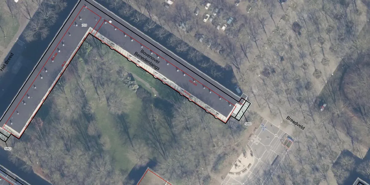 Het perceel waarop Benedenlangs 102 staat heeft een oppervlakte van 2428 m². Dit is een zeer groot perceel. De perceeloppervlakte wordt geregistreerd door het Kadaster. Gedetailleerde informatie over de maten van dit perceel kunt u vinden in het rapport Kadastrale kaart met maatvoering van Benedenlangs 102.