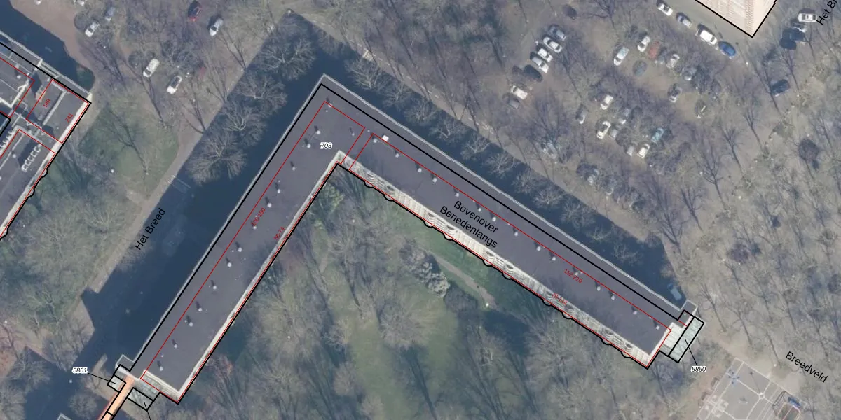 Het perceel waarop Benedenlangs 84 staat heeft een oppervlakte van 2428 m². Dit is een zeer groot perceel. De perceeloppervlakte wordt geregistreerd door het Kadaster. Gedetailleerde informatie over de maten van dit perceel kunt u vinden in het rapport Kadastrale kaart met maatvoering van Benedenlangs 84.