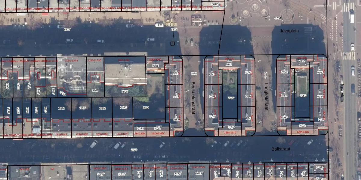 Het adres ligt op het perceel ASD15-S-7028, dat zich in de kadastrale gemeente Amsterdam bevindt. Het perceel is kleiner dan gemiddeld in Amsterdam. Het perceel is 125 m² groot, terwijl het gemiddelde ligt op 537,06 m². Het grootste perceel in de kadastrale gemeente is 14,5 ha. Het kleinste perceel heeft een oppervlakte van 0 m². Op het perceel zijn 8 adressen aanwezig. In de Basisregistratie Kadaster (BRK) werden de grenzen van het perceel geregistreerd op 20-10-2006.