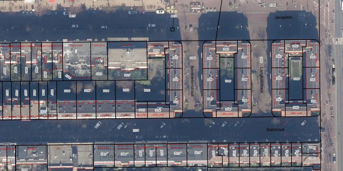 Het adres ligt op het perceel ASD15-S-7028, dat zich in de kadastrale gemeente Amsterdam bevindt. Het perceel is kleiner dan gemiddeld in Amsterdam. Het perceel is 125 m² groot, terwijl het gemiddelde ligt op 537,06 m². Het grootste perceel in de kadastrale gemeente is 14,5 ha. Het kleinste perceel heeft een oppervlakte van 0 m². Op het perceel liggen in totaal 8 adressen. De huidige grenzen van het perceel zijn digitaal in de Basisregistratie Kadaster (BRK) geregistreerd op 20-10-2006.