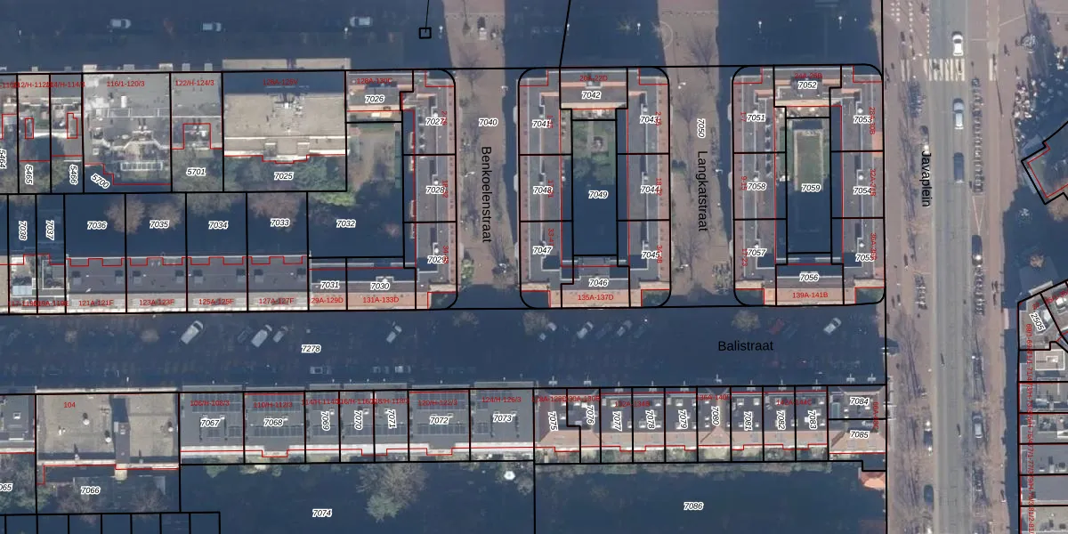 Benkoelenstraat 43 is gelegen op kadastraal perceel ASD15S7047. Deze kadastrale aanduiding is uniek en wordt gebruikt door het Kadaster om eigendomsrechten en andere zakelijke rechten vast te leggen. Het perceel maakt onderdeel uit van de kadastrale gemeente Amsterdam.