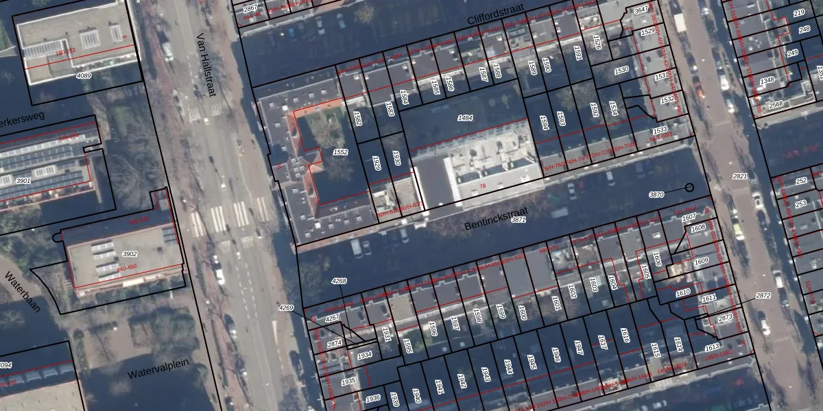 Het perceel waarop het adres ligt is ASD21-Y-1930. De afkorting 'ASD21' staat voor kadastrale gemeente Amsterdam. Het perceel is kleiner dan gemiddeld in Amsterdam. Het perceel is 116 m² groot, terwijl het gemiddelde ligt op 770,38 m². De grootste perceeloppervlakte in de kadastrale gemeente is 7,1 ha. De kleinste oppervlakte bedraagt 0 m². Op het perceel zijn 4 adressen aanwezig. In de Basisregistratie Kadaster (BRK) werden de grenzen van het perceel geregistreerd op 18-01-2007.