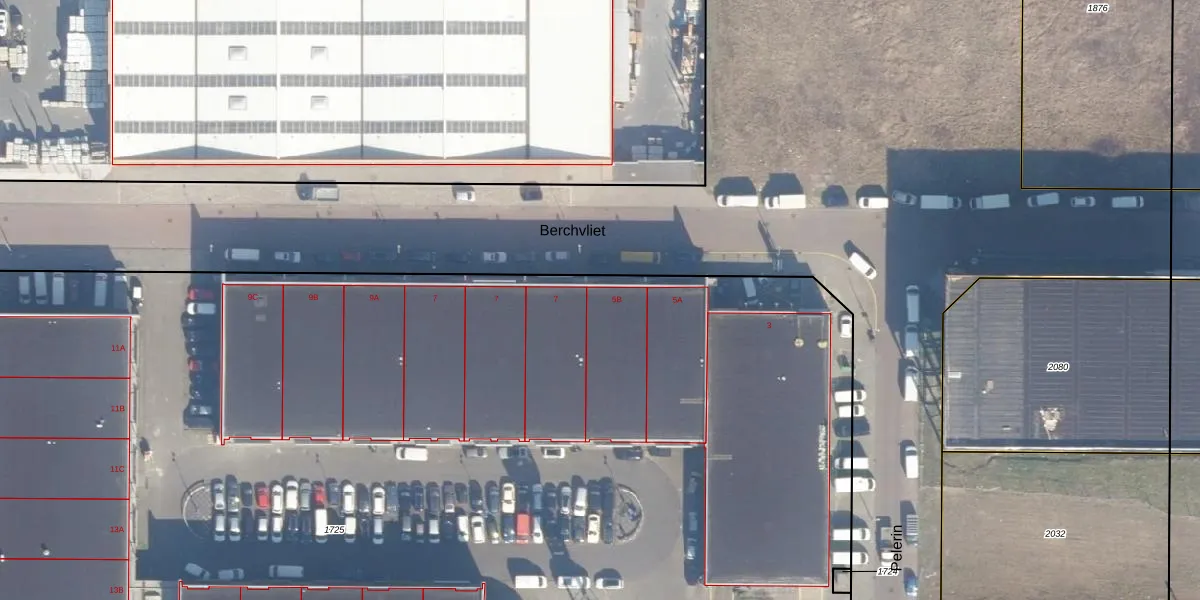 Het perceel waarop Berchvliet 5-D staat heeft een oppervlakte van 1,2 ha. Dit is een zeer groot perceel. De perceeloppervlakte wordt geregistreerd door het Kadaster. Gedetailleerde informatie over de maten van dit perceel kunt u vinden in het rapport Kadastrale kaart met maatvoering van Berchvliet 5-D.