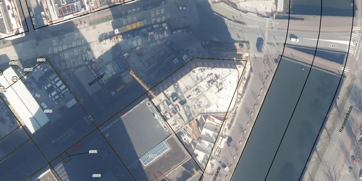 Het adres is gelegen op perceel 11721 in de sectie K en de kadastrale gemeente Amsterdam. De kadastrale aanduiding is aldus ASD07-K-11721. Het perceel is 1824 m² groot. Dat is kleiner dan de gemiddelde perceeloppervlakte in Amsterdam, dat op 3005,21 m² ligt. De grootste perceeloppervlakte in de kadastrale gemeente is 56,2 ha. De kleinste oppervlakte bedraagt 0 m². Er zijn 405 adressen aanwezig op het perceel. De laatste wijziging in het de Basisregistratie Kadaster (BRK) was op 08-11-2022.