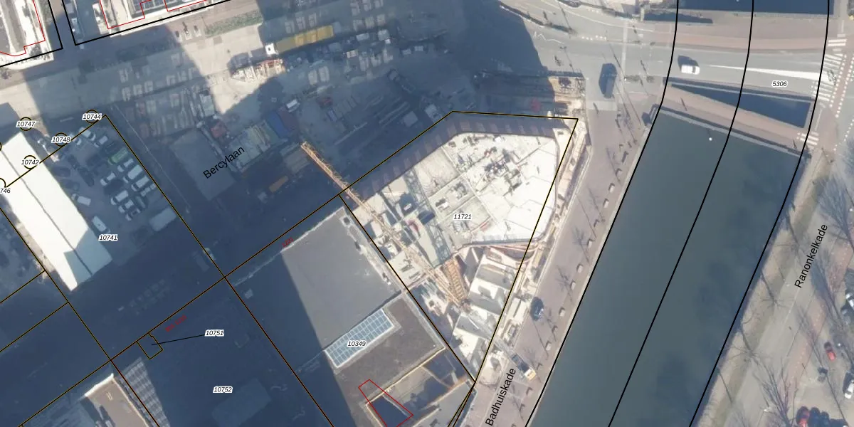 Het adres is gelegen op perceel 11721 in de sectie K en de kadastrale gemeente Amsterdam. De kadastrale aanduiding is aldus ASD07-K-11721. Het perceel is 1824 m² groot. Dat is kleiner dan de gemiddelde perceeloppervlakte in Amsterdam, dat op 2997,17 m² ligt. De grootste perceeloppervlakte in de kadastrale gemeente is 56,2 ha. De kleinste oppervlakte bedraagt 0 m². Er zijn 405 adressen aanwezig op het perceel. In de Basisregistratie Kadaster (BRK) werden de grenzen van het perceel geregistreerd op 08-11-2022.