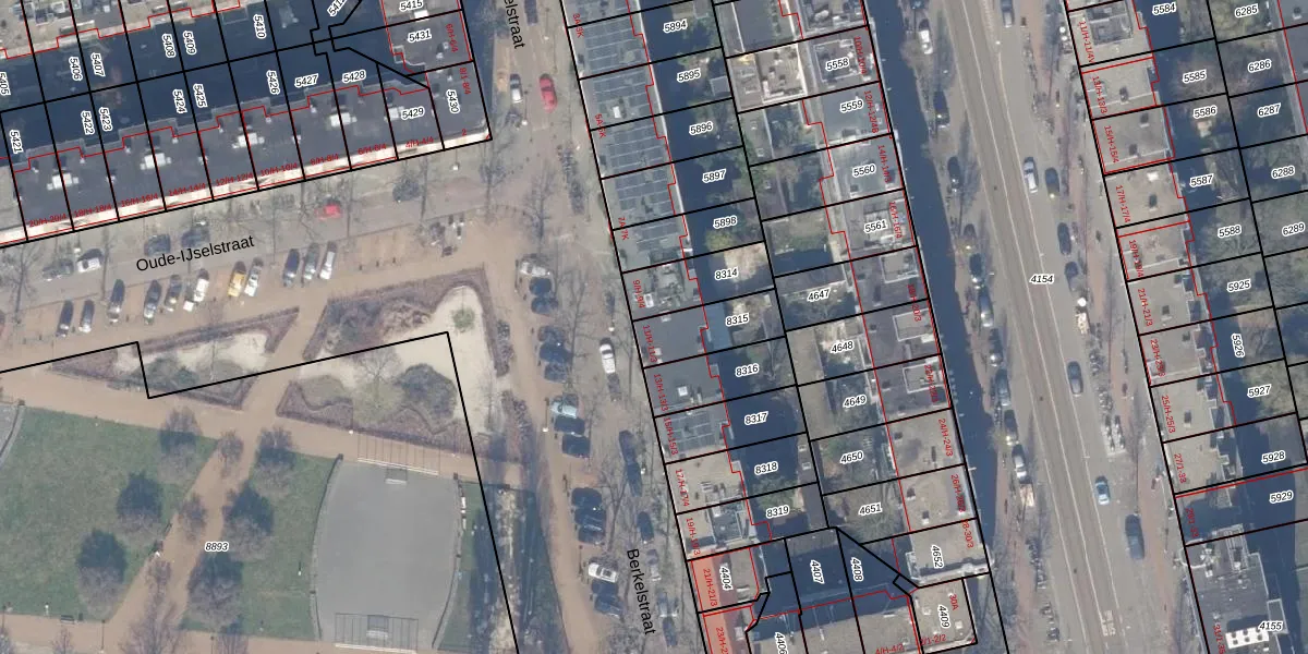 Het perceel waarop het adres ligt is ASD18-V-8315. De afkorting 'ASD18' staat voor kadastrale gemeente Amsterdam. Het perceel is kleiner dan gemiddeld in Amsterdam. Het perceel is 170 m² groot, terwijl het gemiddelde ligt op 558,8 m². Het grootste perceel in de kadastrale gemeente is 12,5 ha. Het kleinste perceel heeft een oppervlakte van 0 m². Er zijn 4 adressen aanwezig op het perceel. De huidige grenzen van het perceel zijn digitaal in de Basisregistratie Kadaster (BRK) geregistreerd op 26-09-2006.