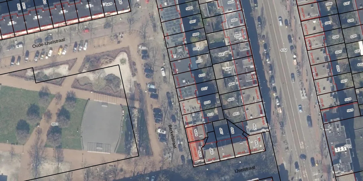 Het perceel waarop het adres ligt is ASD18-V-8317. De afkorting 'ASD18' staat voor kadastrale gemeente Amsterdam. Het perceel is kleiner dan gemiddeld in Amsterdam. Het perceel is 170 m² groot, terwijl het gemiddelde ligt op 558,8 m². Het grootste perceel in de kadastrale gemeente is 12,5 ha. Het kleinste perceel heeft een oppervlakte van 0 m². Op het perceel zijn 4 adressen aanwezig. De laatste wijziging in het de Basisregistratie Kadaster (BRK) was op 26-09-2006.