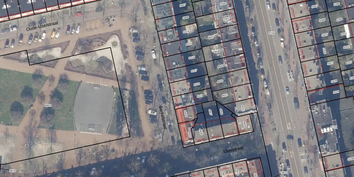 Het perceel waarop het adres ligt is ASD18-V-8318. De afkorting 'ASD18' staat voor kadastrale gemeente Amsterdam. Het perceel is kleiner dan gemiddeld in Amsterdam. Het perceel is 170 m² groot, terwijl het gemiddelde ligt op 558,8 m². Het grootste perceel in de kadastrale gemeente is 12,5 ha. Het kleinste perceel heeft een oppervlakte van 0 m². Op het perceel zijn 5 adressen aanwezig. De laatste wijziging in het de Basisregistratie Kadaster (BRK) was op 26-09-2006.