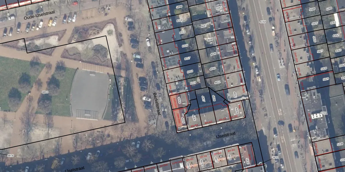 Het perceel waarop het adres ligt is ASD18-V-8319. De afkorting 'ASD18' staat voor kadastrale gemeente Amsterdam. Het perceel is kleiner dan gemiddeld in Amsterdam. Het perceel is 165 m² groot, terwijl het gemiddelde ligt op 558,8 m². Het grootste perceel in de kadastrale gemeente is 12,5 ha. Het kleinste perceel heeft een oppervlakte van 0 m². Op het perceel liggen in totaal 4 adressen. In de Basisregistratie Kadaster (BRK) werden de grenzen van het perceel geregistreerd op 06-10-2006.