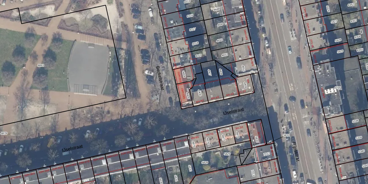 Het perceel waarop het adres ligt is ASD18-V-4405. De afkorting 'ASD18' staat voor kadastrale gemeente Amsterdam. Het perceel is kleiner dan gemiddeld in Amsterdam. Het perceel is 105 m² groot, terwijl het gemiddelde ligt op 558,8 m². Het grootste perceel in de kadastrale gemeente is 12,5 ha. Het kleinste perceel heeft een oppervlakte van 0 m². Er zijn 4 adressen aanwezig op het perceel. De huidige grenzen van het perceel zijn digitaal in de Basisregistratie Kadaster (BRK) geregistreerd op 29-09-2006.