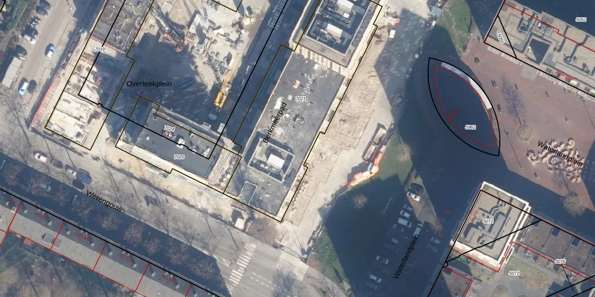 Het perceel waarop het adres ligt is ASD31-AL-7021. De afkorting 'ASD31' staat voor kadastrale gemeente Amsterdam. De gemiddelde perceeloppervlakte in de kadastrale gemeente Amsterdam is 1159,38 m². Dit perceel is met zijn 1912 m² dus groter dan gemiddeld. Het kleinste perceel in de kadastrale gemeente is 0 m² groot. De grootste perceeloppervlakte is 35,6 ha. Er zijn 154 adressen aanwezig op het perceel. In de Basisregistratie Kadaster (BRK) werden de grenzen van het perceel geregistreerd op 23-11-2023.