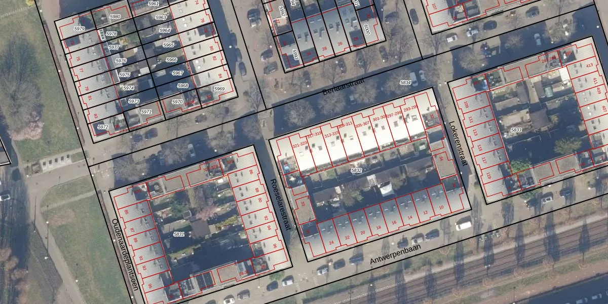 Berlaarstraat 321 is gelegen op kadastraal perceel STN02E5832. Deze kadastrale aanduiding is uniek en wordt gebruikt door het Kadaster om eigendomsrechten en andere zakelijke rechten vast te leggen. Het perceel maakt onderdeel uit van de kadastrale gemeente Sloten Noord-Holland.
