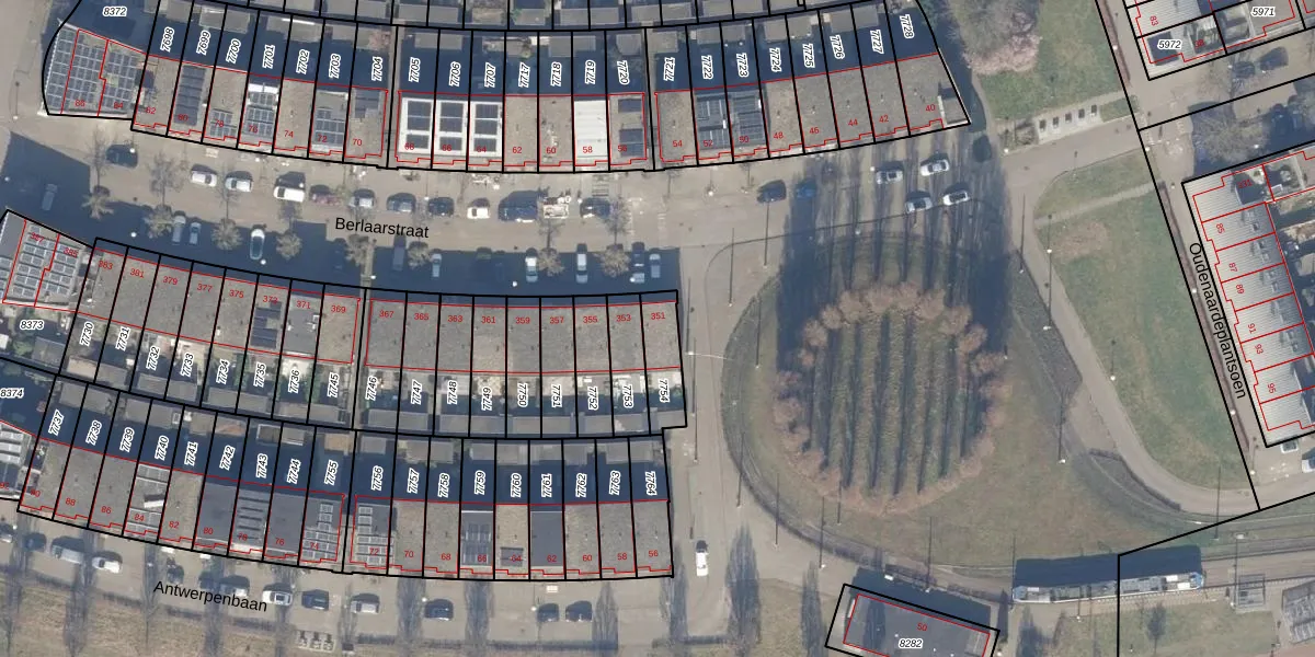 Gebruik de zoekbalk of klik op een perceel voor informatie over de adressen binnen dit perceel.