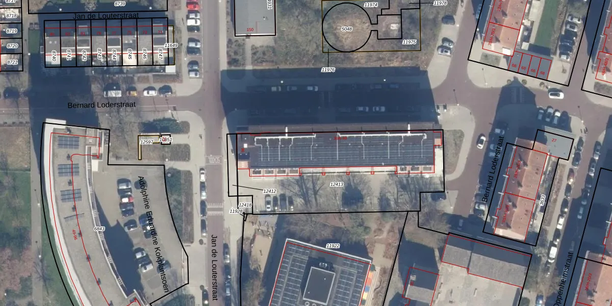 Bernard Loderstraat 43-E is gelegen op kadastraal perceel STN02D12413. Deze kadastrale aanduiding is uniek en wordt gebruikt door het Kadaster om eigendomsrechten en andere zakelijke rechten vast te leggen. Het perceel maakt onderdeel uit van de kadastrale gemeente Sloten Noord-Holland.
