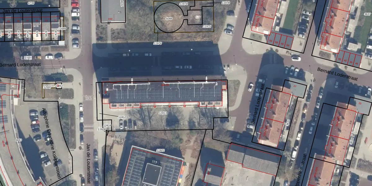 Bernard Loderstraat 43-H is gelegen op kadastraal perceel STN02D12413. Deze kadastrale aanduiding is uniek en wordt gebruikt door het Kadaster om eigendomsrechten en andere zakelijke rechten vast te leggen. Het perceel maakt onderdeel uit van de kadastrale gemeente Sloten Noord-Holland.