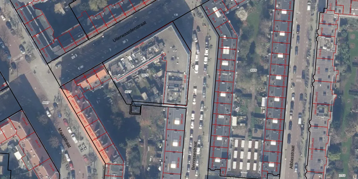 Het adres is gelegen op perceel 9975 in de sectie V en de kadastrale gemeente Amsterdam. De kadastrale aanduiding is aldus ASD18-V-9975. De gemiddelde perceeloppervlakte in de kadastrale gemeente Amsterdam is 559,23 m². Dit perceel is met zijn 1560 m² dus groter dan gemiddeld. Het grootste perceel in de kadastrale gemeente is 12,5 ha. Het kleinste perceel heeft een oppervlakte van 0 m². Op het perceel zijn 45 adressen aanwezig. De huidige grenzen van het perceel zijn digitaal in de Basisregistratie Kadaster (BRK) geregistreerd op 14-12-2006.