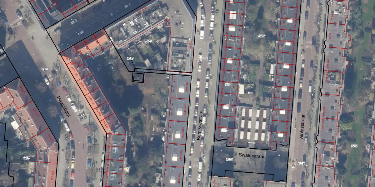 Het perceel waarop het adres ligt is ASD18-V-8008. De afkorting 'ASD18' staat voor kadastrale gemeente Amsterdam. Het perceel is met 6860 m² relatief groot. Het gemiddelde ligt in de kadastrale gemeente Amsterdam op 558,8 m². De grootste perceeloppervlakte in de kadastrale gemeente is 12,5 ha. De kleinste oppervlakte bedraagt 0 m². Er zijn 158 adressen aanwezig op het perceel. De laatste wijziging in het de Basisregistratie Kadaster (BRK) was op 09-03-2010.