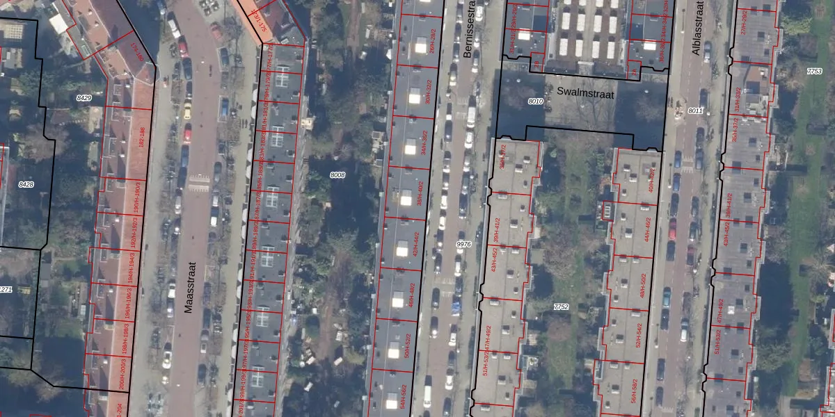 Het perceel waarop het adres ligt is ASD18-V-8008. De afkorting 'ASD18' staat voor kadastrale gemeente Amsterdam. Het perceel is met 6860 m² relatief groot. Het gemiddelde ligt in de kadastrale gemeente Amsterdam op 558,8 m². De grootste perceeloppervlakte in de kadastrale gemeente is 12,5 ha. De kleinste oppervlakte bedraagt 0 m². Er zijn 158 adressen aanwezig op het perceel. In de Basisregistratie Kadaster (BRK) werden de grenzen van het perceel geregistreerd op 09-03-2010.