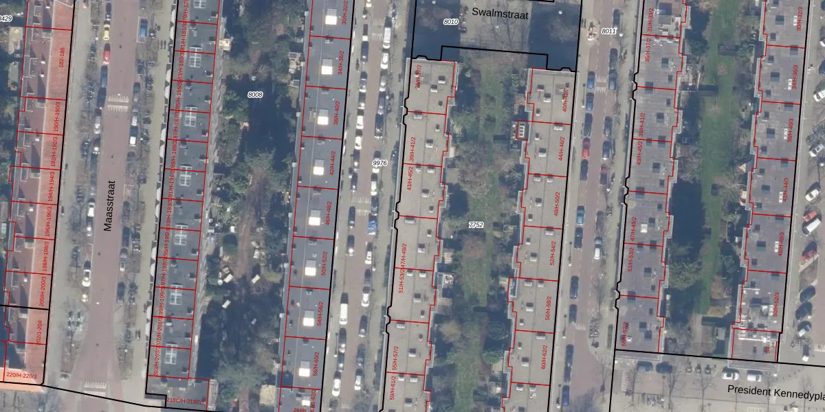 Het perceel waarop het adres ligt is ASD18-V-7752. De afkorting 'ASD18' staat voor kadastrale gemeente Amsterdam. Het perceel is met 3680 m² relatief groot. Het gemiddelde ligt in de kadastrale gemeente Amsterdam op 558,8 m². De grootste perceeloppervlakte in de kadastrale gemeente is 12,5 ha. De kleinste oppervlakte bedraagt 0 m². Op het perceel zijn 84 adressen aanwezig. De laatste wijziging in het de Basisregistratie Kadaster (BRK) was op 09-03-2010.
